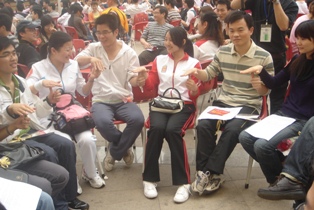 活动分为5部分,首先是交友对对碰,通过对对碰形式,自由组队和抽签组队。活动内容有抓拇指、传玫瑰——自我介绍和送玫瑰,节目内容有趣、互动性强,掌声和欢笑声充满整个活动现场。