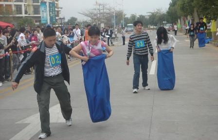 精彩不断、笑声不断。通过对对碰游戏环节组队后进行趣味运动比赛,节目有龙凤传珠、并肩前行、欢乐列车、快乐袋鼠,顺利通过四关的算完成任务。还有城市寻宝比赛,互动游戏及颁奖、抽奖等。