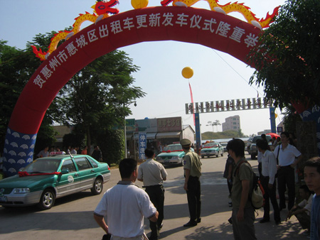 此次发车仪式可以说是惠州市出租车史上的一座里程碑。是首次首批更新的车型,并且是从1.6L的排量提升到了1.8L,让惠州的出租车档次提到了一个新的台阶,尤如航海明灯成为今后惠州出租车发展的一个标志性方向。