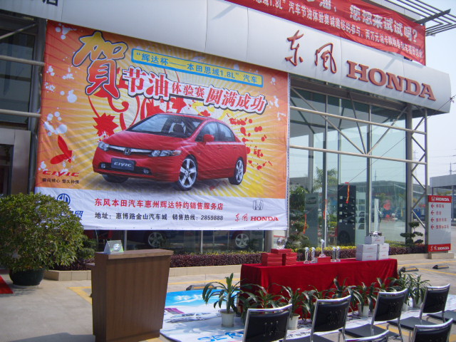 能源紧张,燃料涨价,环境污染;人类的生存面临着前所未有的危机。本着"倡导节能生活,建设绿色惠州"的环保理念,惠州市辉达汽贸公司与惠州日报联合举办“辉达杯-思域汽车”百公里节油体验赛于12月15日正式开赛。活动的主题是环保、节能,旨在向市民宣传节油意识、增强环保理念、引导理性消费、提升节能环保意识、培养科学的驾驶方式、使节能环保理念影响更多人。同时让思域车主们亲身体验东风本田思域1.8L汽车的2.0动力1.5油耗的高品质性能。