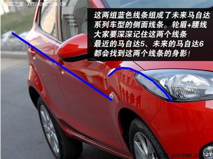 车身侧面,圆润翼子板加上硬朗的腰线,勾勒出马自达2简单的侧面轮廓,高高的腰线也让这款车有一种向前冲的感觉。