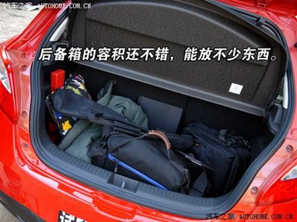 如果想在外面开启后备箱,只需要轻轻按动后门上的黑色按钮,打开后备箱并不需要很大的力气,对于一款小型车来说,马自达2的后备箱还算不错,可以放进不少的物品。