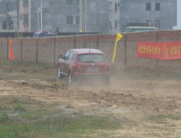 当日,车商为试驾人员提供了一红一白两辆崭新的逍客进行试驾。位于惠城区大湖溪东风汽车专营店旁的试驾的场地模拟了包括泥地、坑洼、草地、“S”型急转弯在内的各种恶劣道路状况。