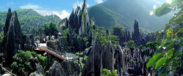 贺州玉石林位于八步区黄田镇,距市区18公里,与姑婆山国家森林公园、贺州温泉同在一条旅游线上;贺州石林景区面积25公顷,总游览路程约13公里,观赏景点一百余处。游于林中,如入仙境,大自然的鬼斧神工令人叹为观止,千百年的故事,传说令人舒坦感慨。