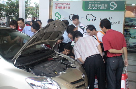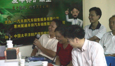 本次爱车养护课堂以轻松的演讲方式结合近期天气以及油价上涨带来的一系列行车问题进行分析。并尤其针对最近多雨季节给车主带来的用车难题作了较深入的讲演和解答,车主踊跃发言,纷纷提出自己平时用车时遇到的疑难问题,在江北展通丰田养护课堂上均一一得到了详尽的回答,课堂现场气氛高潮迭起,不时可以看到车主露出满意的笑容!