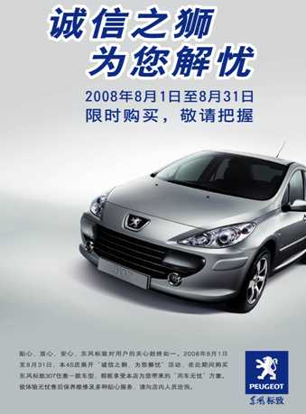 即日起,东风标致——惠州惠标特约店为购买东风标致307车型的消费者免费提供两年内的车辆维护超值服务套餐。该套餐涉及车辆保养、保险理赔、备件质量及价格等多个消费者用车中注重的关键项目和方面。