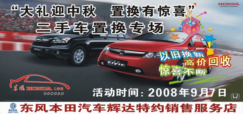 这次活动将分阶段、有步骤地推进二手车业务。首先在各品牌经销店开展二手车置换业务,以"交易安心、手续方便、价格实惠、心悦礼物"为准则,让置换的概念得到消费者的认可,对东风本田品牌的价值有更好的理解。同时开展各种培训工作,完善技术支持体系,通过人才培养,确保二手车业务人员具备专业化、高水平的评估能力,在人才培养过程中,始终立足于在当前汽车市场怎样给顾客提供"安心"的服务,开发出了一些具有惠州特色的服务内容。