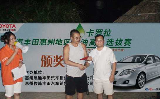 8月30日,由江北惠州展通丰田和惠州俊峰丰田两家一汽丰田经销商联合举办的“卡罗拉惠州地区节油高人选拔赛”火热开赛,6名卡罗拉车主从30多名优秀选手中脱颖而出,分别获得卡罗拉1.8L自动/手动挡“节油高人”的荣誉称号。其中,28号选手练先生以4.89升/100KM的成绩创下了卡罗拉节油高人选拔赛的最好成绩。此次比赛的冠、亚、季军卡罗拉车主分别获得了3000元加油卡、2000元加油卡以及1000元加油卡的奖励。