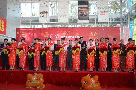 市委副书记 陈仕其亲临现场祝贺东风本田俊峰店正式开业。惠、深政府有关领导为新店开张进行简单而隆重的剪彩仪式,此外,俊峰集团有关领导为10位东风本田新车主颁发车匙,感谢他们对东本俊峰店的支持。