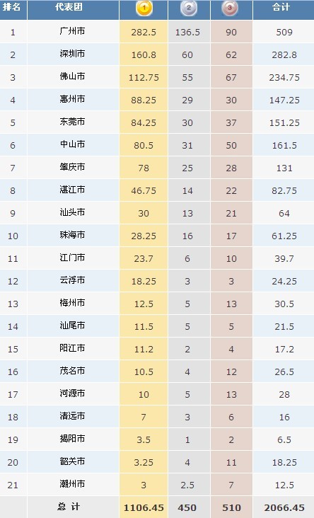 综合奖牌榜